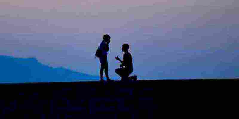 Η ιδιαίτερη αυτή στιγμή ενός ερωτευμένου ζευγαριού απαθανατίστηκε αυθόρμητα, χωρίς υπερβολές, με τον πιο απλό και γι’ αυτό πιο όμορφο τρόπο μέσα από τον φακό φωτογράφου ο οποίος τους εντόπισε τυχαία από απόσταση την ώρα που βρίσκονταν στο τείχος του φάρου και ο άνδρας γονάτιζε για να κάνει πρόταση γάμου στην αγαπημένη του.