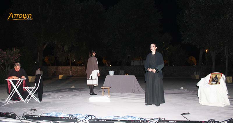 Αυτή την ψυχογραφία αποτύπωσε και ο σκηνοθέτης Γ. Νικολαίδης στη θεατρική μεταφορά του έργου που ανέβηκε, την Τρίτη 2 Ιουλίου, στις Παλιές Φυλακές Ωρωπού, στο πλαίσιο του «Φεστιβάλ Εκδηλώσεων Καλοκαίρι 2022» που διοργανώνει το Ν.Π.Δ.Δ. Πολιτισμού & Περιβάλλοντος Δήμου Ωρωπού.