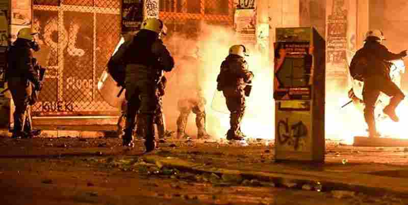 Οι αστυνομικοί των ΜΑΤ καταδίωξαν τους δράστες, οι οποίοι ωστόσο κατάφεραν να διαφύγουν.