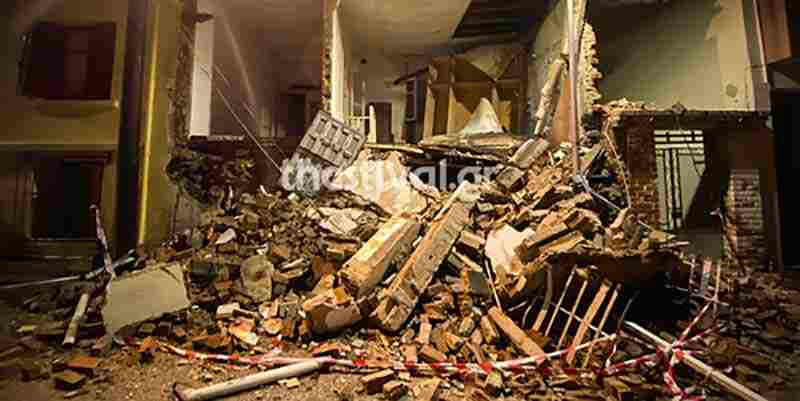 Για το συμβάν έχουν ενημερωθεί οι ιδιοκτήτες της οικίας αλλά και οι αρμόδιες υπηρεσίες. Μέχρι στιγμής τα μπάζα παραμένουν στο σημείο, έχοντας καλύψει μεγάλο τμήμα του οδοστρώματος.