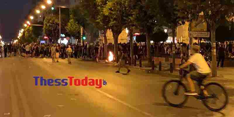 Φωτιές άναψαν το βράδυ του Σαββάτου (12.09.2020) αντιεξουσιαστές στο κέντρο της Θεσσαλονίκης και συγκεκριμένα μπροστά από την Καμάρα.