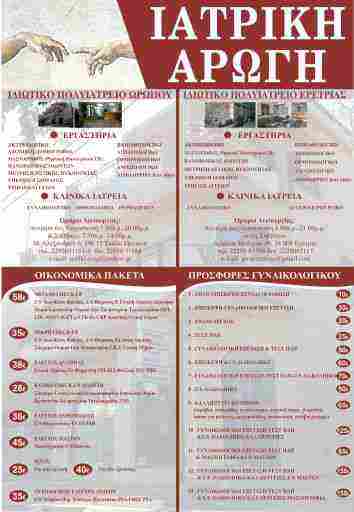 Τα Ιδιωτικά Πολυιατρεία «ΙΑΤΡΙΚΗ ΑΡΩΓΗ» αποτελούν πρότυπα διαγνωστικά κέντρα, όχι μόνο για τον Ωρωπό και την Ερέτρια, όπου εδρεύουν, αλλά και για όλη την Ελλάδα.