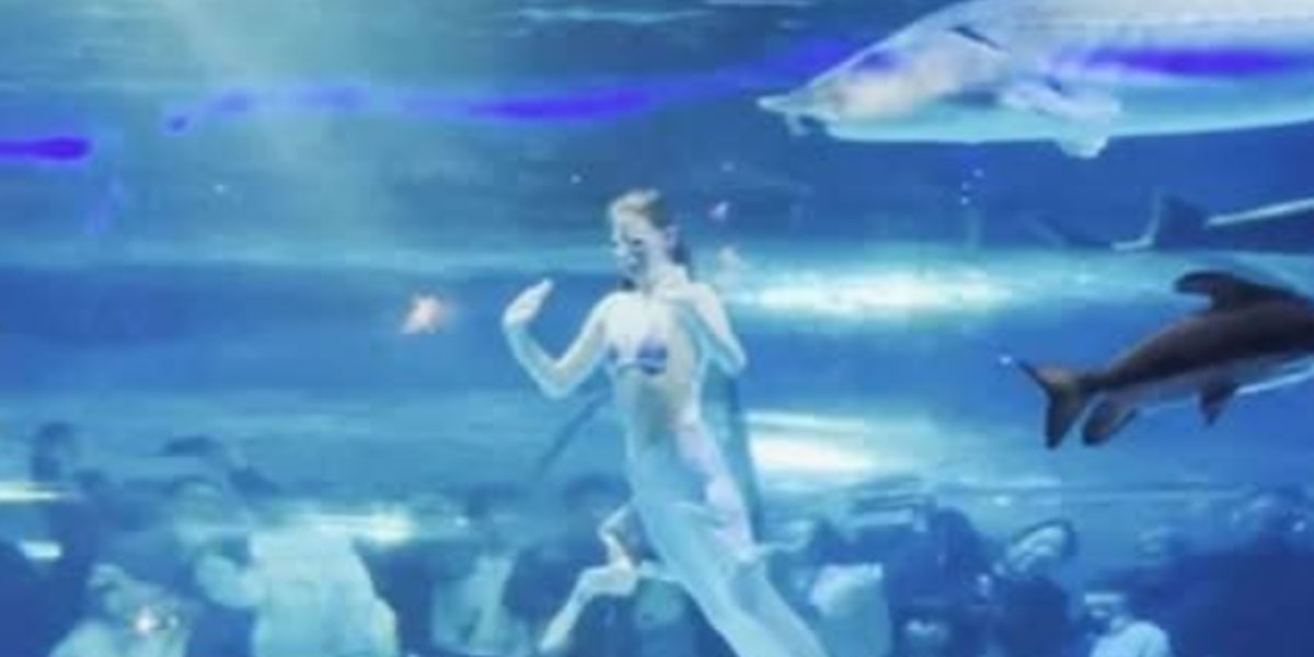 Το βίντεο που έγινε viral με τη δημοσιοποίησή του, δείχνει μια νεαρή γοργόνα να δέχεται επίθεση από ένα γιγαντιαίο ψάρι κατά τη διάρκεια μιας ζωντανής παράστασης, στο Mekong Underwater World στην επαρχία Γιουνάν της Κίνας.
