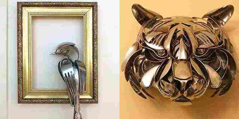 Ο καλλιτέχνης λυγίζει και μορφοποιεί το μέταλλο όπως θέλει αυτός και φτιάχνει αγάλματα ζώων που μοιάζουν να είναι ζωντανά.