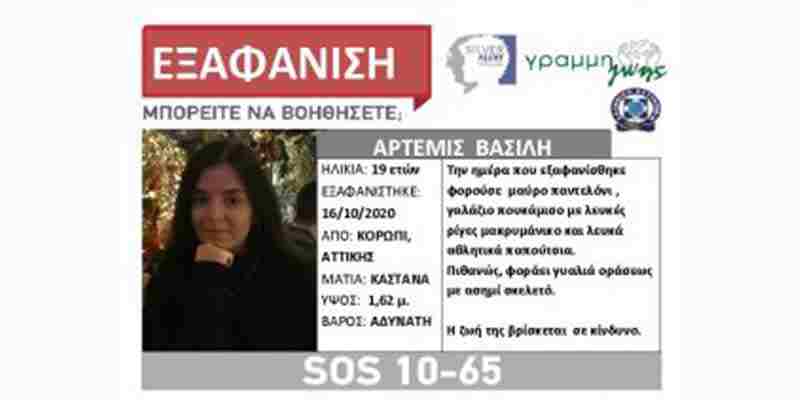 Η Άρτεμις Βασίλη 19 χρόνων, το μεσημέρι της Παρασκευής 16 Οκτωβρίου είχε πει στους δικούς της ότι θα πήγαινε στο Jumbo Παιανίας για να κάνει αίτηση προκειμένου να εργαστεί εκεί. Κάμερα ασφαλείας στην οδό Αττικής στην ίδια περιοχή, την κατέγραψε στις 14:36, σε απόσταση από το σπίτι της περίπου 500 μέτρων. Συγγενικό της πρόσωπο την είδε να περιμένει σε στάση λεωφορείου.