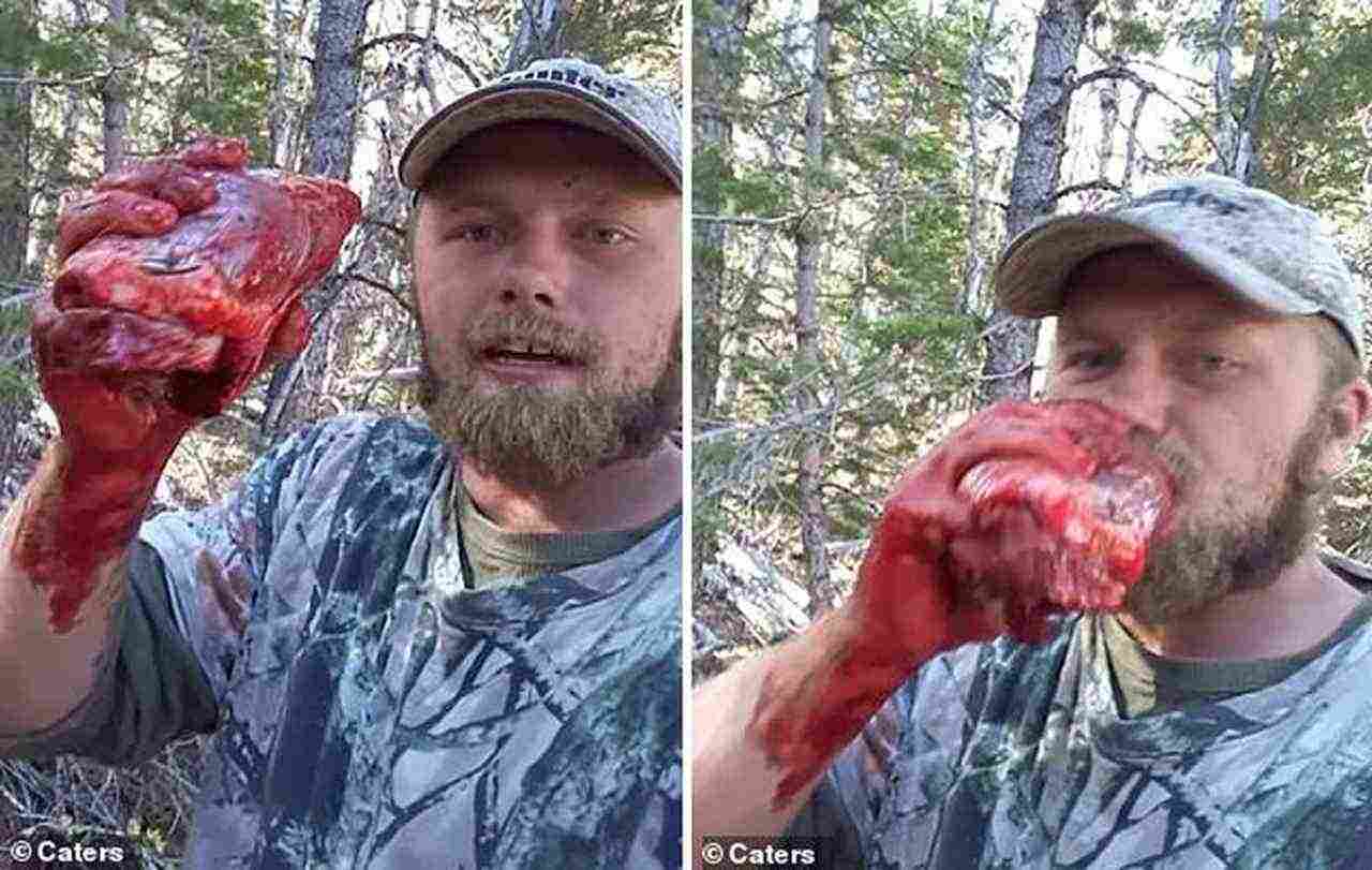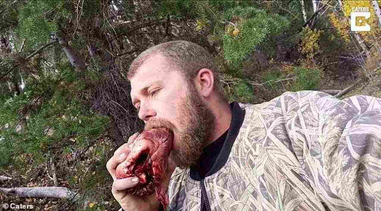 Ο 25χρονος την στιγμή που τρώει την ματωμένη καρδιά του ζώου.