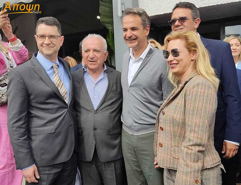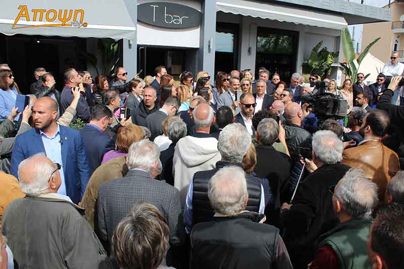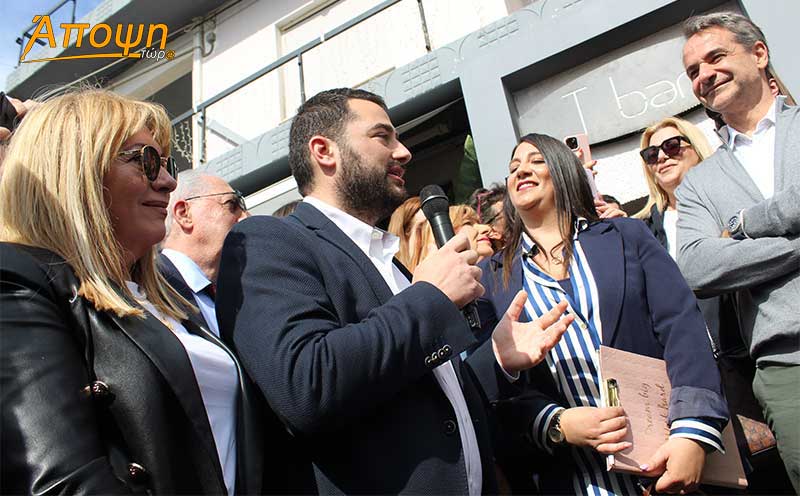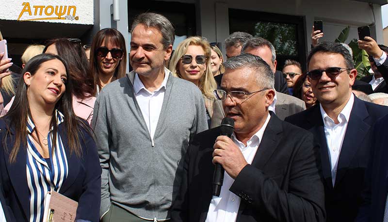 Ο Δήμαρχος Τανάγρας Βασίλης Περγάλιας καλωσόρισε τον Πρωθυπουργό της χώρας και Πρόεδρο της Νέας Δημοκρατίας υπενθυμίζοντας του ότι και το 1990 ο πατέρας του Κωνσταντίνος Μητσοτάκης είχε προεκλογικά επισκεφτεί το Σχηματάρι και κατόπιν κέρδισε τις εκλογές.