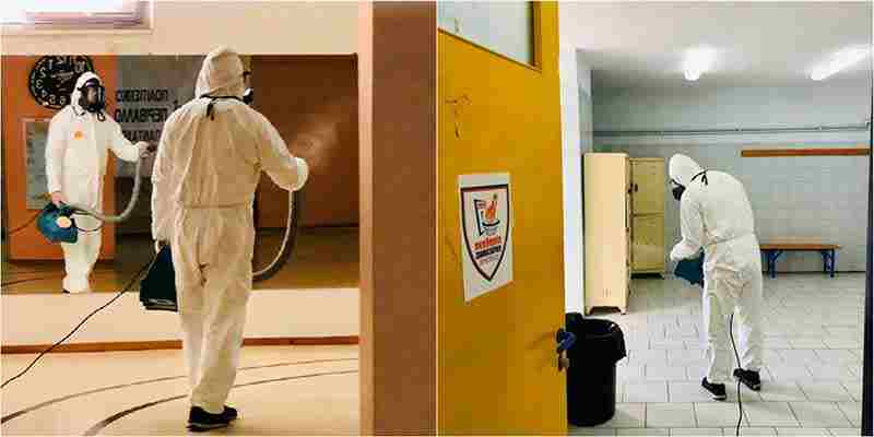 Πυρετωδώς εργάζονται τα εξειδικευμένα συνεργεία, ώστε μέχρι το μεσημέρι να έχει πραγματοποιηθεί απολύμανση και σε όλα τα άλλα δημοτικά κτίρια (Δημαρχεία, ΚΕΠ, ΚΑΠΗ).