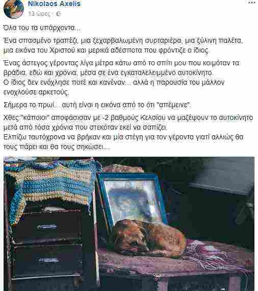 Ο Νικόλαος Αξελής που υπογράφει την συγκεκριμένη ανάρτηση είναι «γείτονας» του κυρ-Ηλία για πολλά χρόνια.