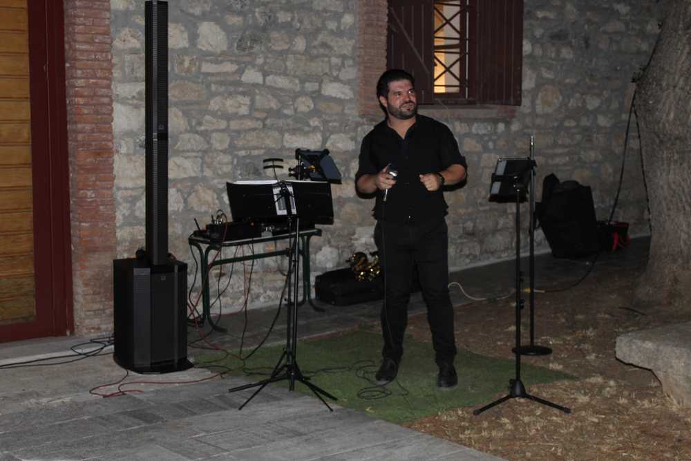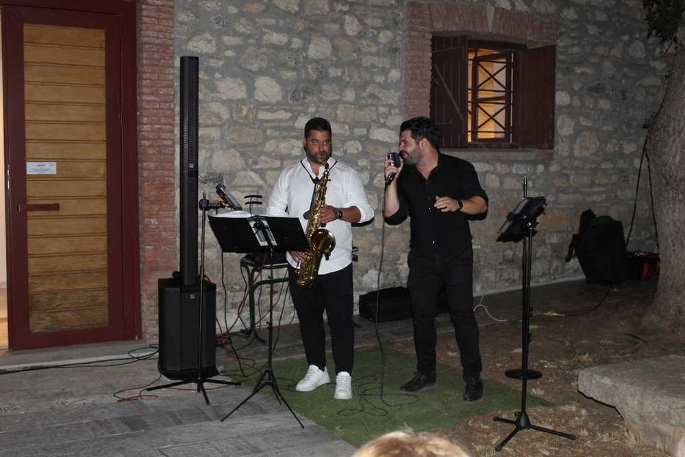Βραδιά σαξοφώνου και οι ήχοι υπέροχων μελωδιών του χθες, έστησαν χορό, ανάμεσα στην ιστορία, τα αγάλματα, το μύθο, και τη φαντασία, συνεπαίρνοντας και ταξιδεύοντας όσους τυχερούς και ήταν πολλοί, ομολογουμένως, κατέλυσαν το χώρο για να απολαύσουν τις μοναδικές εκτελέσεις του Δημήτρη Γεωργάκαινα στο σαξόφωνο και του Γιάννη Παπαδημητρίου στο τραγούδι.