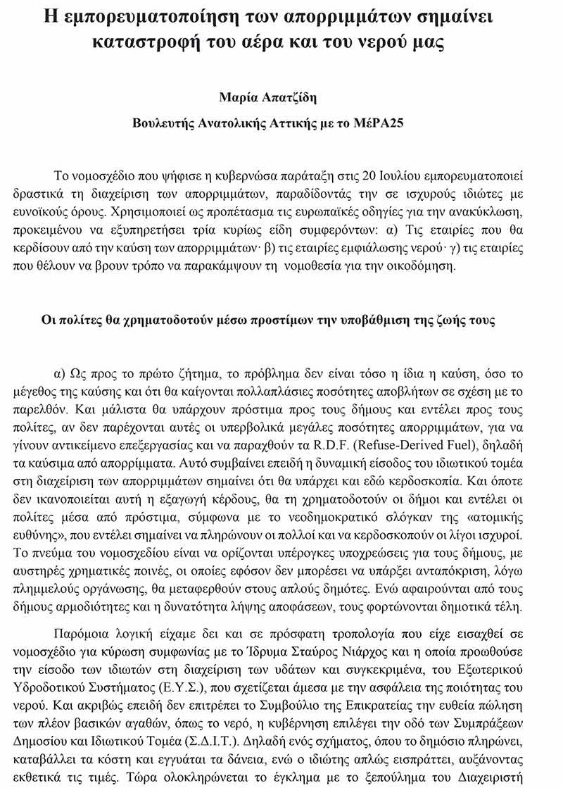 ΠολιτικήΡοή ΝέωνΤελευταία Νέα Μαρία Απατζίδη: Η εμπορευματοποίηση των απορριμμάτων σημαίνει καταστροφή του αέρα και του νερού μας Σοφία Μπασκάκη 21 Ιουλίου, 2021