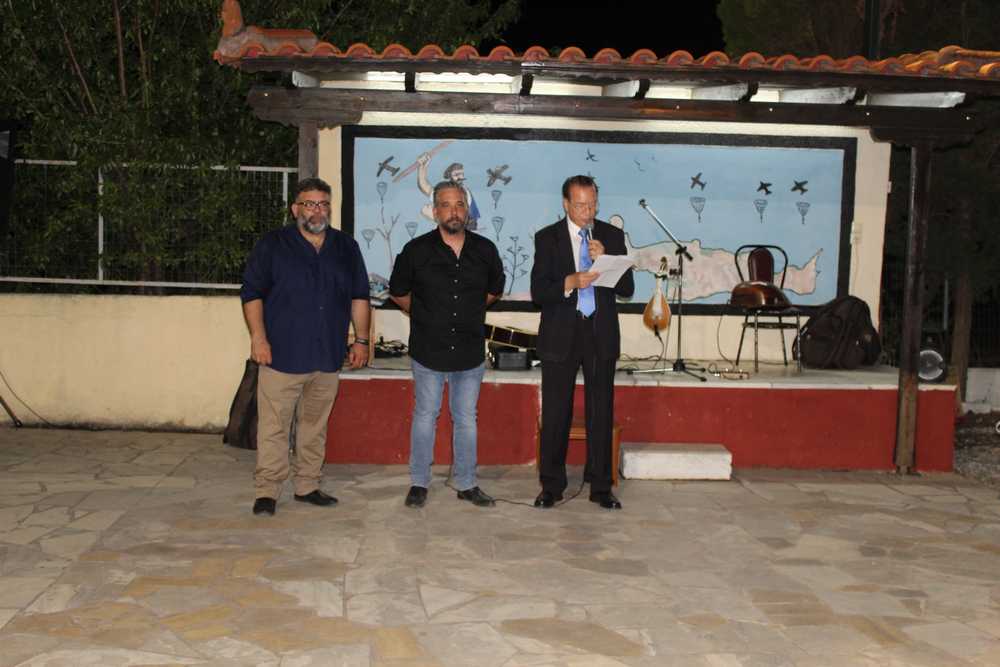 Η εκδήλωση ξεκίνησε με επιμνημόσυνη δέηση για τους πεσόντες της Μάχης της Κρήτης. Ακολούθως χαιρετισμό απηύθυνε ο Αντιπεριφερειάρχης Βοιωτίας Γιώργος Ντασιώτης, ο οποίος αναφέρθηκε στον ηρωισμό των Κρητικών και συνεχάρη την Ένωση Κρητών που κρατά άσβεστη τη μνήμη.