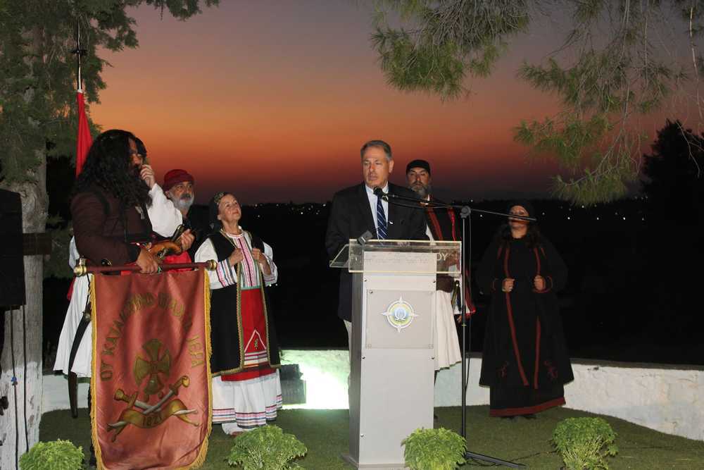 Επεσήμανε ότι το ζητούμενο και στις μέρες μας είναι το Ελευθερία η Θάνατος του  Θεόδωρου Κολοκοτρώνη καθώς η χώρα μας όλα αυτά τα χρόνια παλεύει για την ιστορική της συνέχεια μέσα από πολλά προβλήματα επιτροπείες και συμφέροντα των ισχυρών της γης, που με τη βοήθεια και του εσωτερικού παράγοντα, κάνουν ότι είναι δυνατόν, για την συρρίκνωση  του απανταχού ελληνισμού, όπως έγινε στη Μικρασία, την Βόρεια Ήπειρο, τον Πόντο, την Αίγυπτο.