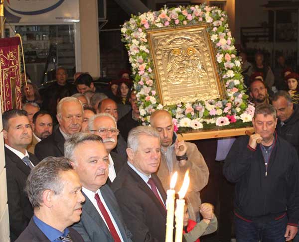 Χοροστατούντος του Σεβασμιωτάτου Μητροπολίτη Κηφισιάς Αμαρουσίου Ωρωπού κ.κ. Κυρίλλου τελέσθηκε Πανηγυρικός Εσπερινός και περιφορά της εικόνας στους δρόμους του Χαλκουτσίου, παρουσία του δημάρχου Ωρωπού Γιώργου Γιασημάκη, του Βουλευτή Γιώργου Βλάχου, του αντιδημάρχου Χαλκουτσίου Ανδρέα Γαζβινιαν, του προέδρου του Δημοτικού Συμβουλίου Χρήστου Τρομπούκη, των αντιδημάρχων Γιώργου Αρμυριώτη, Νίκου Τζεβελέκου, Παναγιώτη Κιούση, του προέδρου της ΚΕΔΩ Αγγέλου Χατζηιωάννου, του προέδρου της Α/θμιας Σχολικής Επιτροπής Νίκου Λούπη, των Δημοτικών συμβούλων Διονύση Καμπιώτη, Βασίλη Μπιλίρη, Παναγιώτη Πέπα, Μιχάλη Τόλια, Κωνσταντίνου Λίτσα, του προέδρου του Τοπικού Συμβουλίου Χαλκουτσίου Γιώργου Λιθαδιώτη, των Τοπικών Συμβούλων Γεωργίας Βάθη Γαζβινιάν, Θανάση Κακαζάνη, Μελέτη Βρούβα, Αντώνη Ράπτη, Δημητρίου Μίχα, το μέλος της σχολικής Επιτροπής Μαριάννα Μίχα του πρώην δημάρχου Ωρωπού Γιάννη Οικονομάκου, εκπροσώπων συλλόγων και φορέων και πλήθους πιστών.