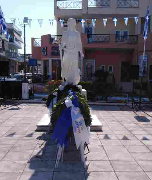 Πριν την παρέλαση, στην πλατεία Ηρώων, τελέστηκε επιμνημόσυνη δέηση και κατατέθηκαν στεφάνια.