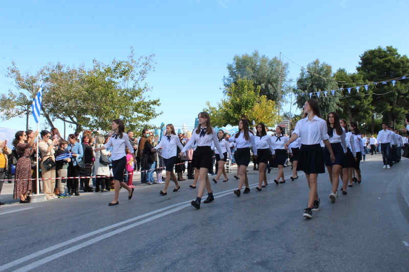 Ακολούθως, με σύμμαχο τον καλό καιρό, πλήθος κόσμου κατέκλυσε την παραλιακή Λεωφόρο Γ. Δροσίνη, για να παρακολουθήσει, την μεγάλη παρέλαση της 28ης Οκτωβρίου.