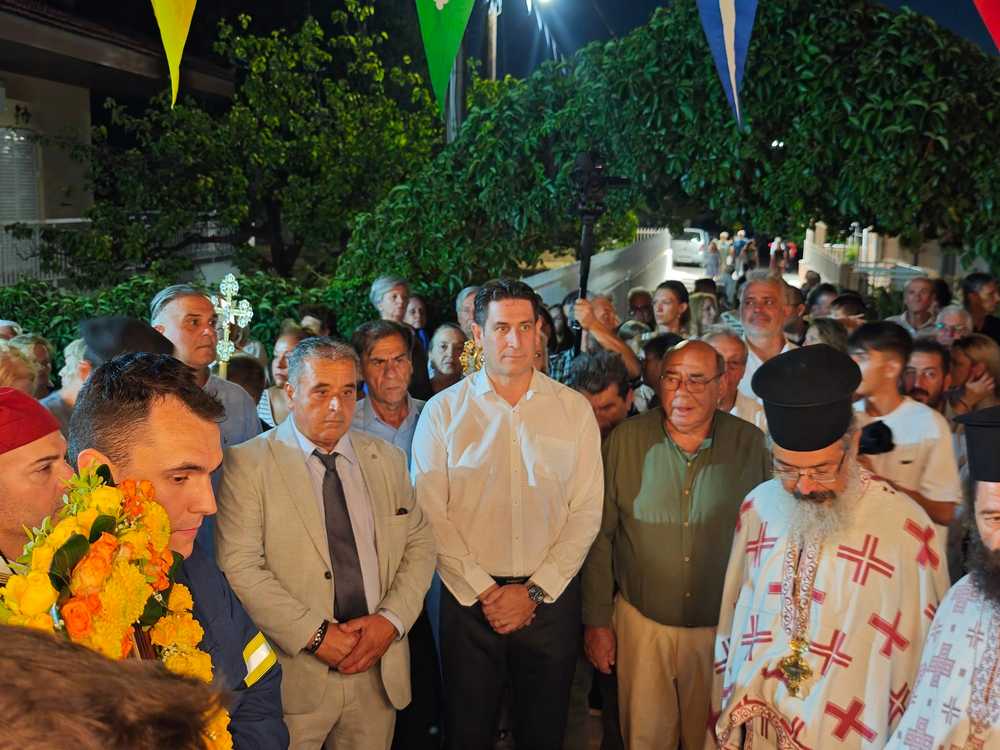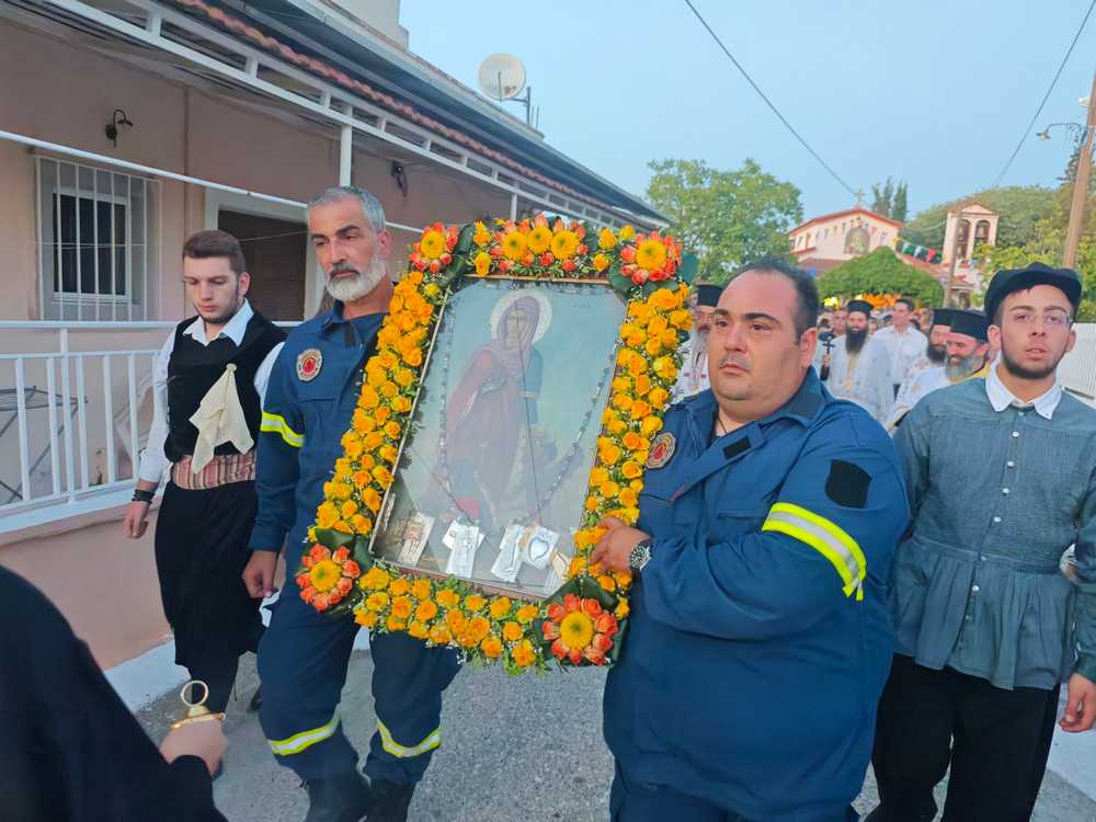 Ακολούθησε Λιτάνευση της Ιερής Εικόνας στους δρόμους του χωριού την οποία κρατούσαν άνδρες της ΕΣΔΩ, των Χορευτικών Τμημάτων του Πολιτιστικού και Πνευματικού Ομίλου Νέων Παλατίων και του Πολιτιστικού Συλλόγου Γυναικών Πολυδενδρίου, συνοδεία της Φιλαρμονικής του Δήμου.