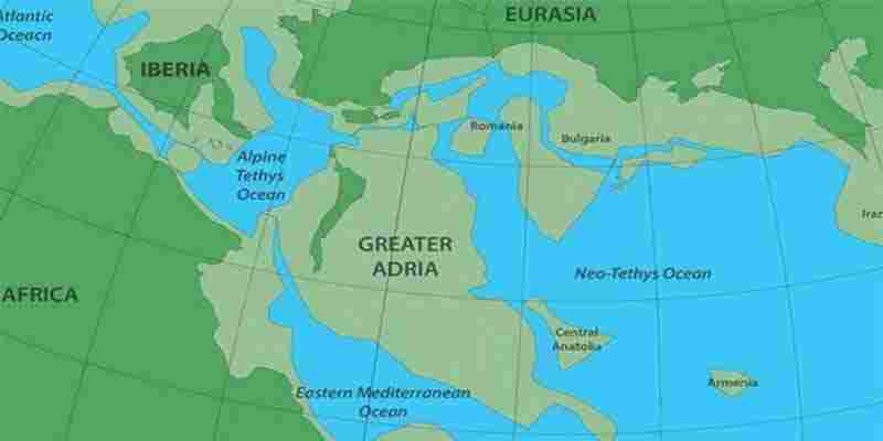 Η Ευρύτερη Αδρία φαίνεται πως είχε μια βίαιη και πολύπλοκη ιστορία. Κάποια εποχή, πριν από περίπου 240 εκατομμύρια χρόνια, αυτονομήθηκε από την νότια υπερήπειρο Γκοντβάνα (που κάλυπτε την περιοχή της σημερινής Αφρικής, Νότιας Αμερικής, Αυστραλίας, Ανταρκτικής, Ινδίας και Αραβικής χερσονήσου) και άρχισε να μετακινείται βορειότερα.