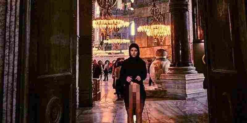 Τελευταίος σταθμός για το πρώην μοντέλο του Playboy ήταν η Κωνσταντινούπολη, όπου πόζαρε γυμνή από την μέση και κάτω στην είσοδο της Αγιά Σοφιάς, ένα θρησκευτικό ορόσημο που χτίστηκε το 537 μ.Χ.