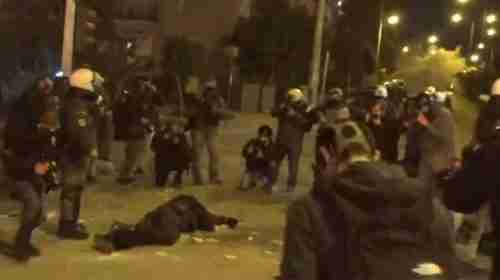 Η στιγμή που αστυνομικοί εγκλωβίζονται ανάμεσα στους διαδηλωτές