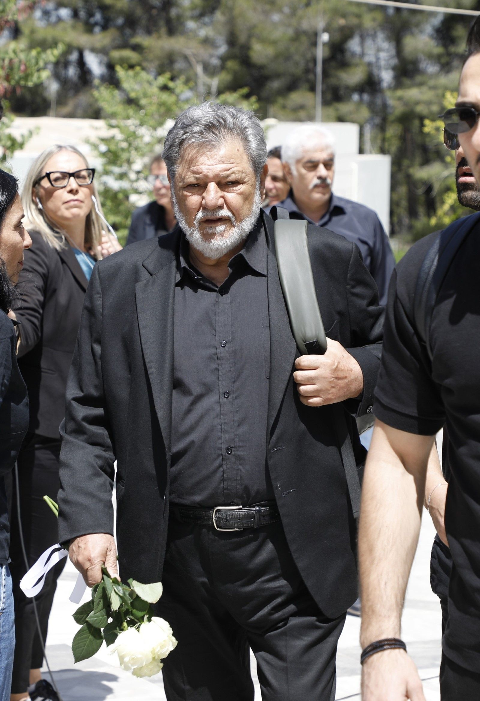 Κρατώντας λίγα λουλούδια, άλλοι ντυμένοι στα λευκά, ο ένας μετά τον άλλον, εκπρόσωποι του καλλιτεχνικού κόσμου και πλήθος κόσμου, έφτασαν πριν τις 12:00 στον Ιερό Ναό Κοιμητηρίου Παπάγου για να συνοδεύσουν τον αγαπημένο ηθοποιό στην τελευταία του κατοικία, σε κλίμα βαθιάς συγκίνησης.
