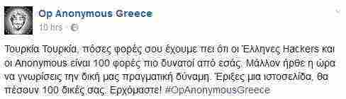 Λίγο αργότερα, επέστρεψαν λέγοντας πως από σήμερα Σάββατο θα ξεκινήσουν μαζικές επιθέσεις σε τουρκικές κυβερνητικές ιστοσελίδες, αλλά και η κεντρική τράπεζα της Τουρκίας.