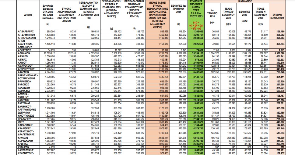 ΠΑΡΑΔΕΙΓΜΑ: Ο Δήμος Αχαρνών καλείται να πληρώσει 6.432.503 ευρώ, αντί για 2.777.339 ευρώ, δηλαδή 3.655.164 ευρώ περισσότερα, ενώ ο Δήμος Μαραθώνος καλείται να πληρώσει 2.352.245 ευρώ, αντί για 1.031.892 ευρώ, δηλαδή 1.320.353 ευρώ περισσότερα.
