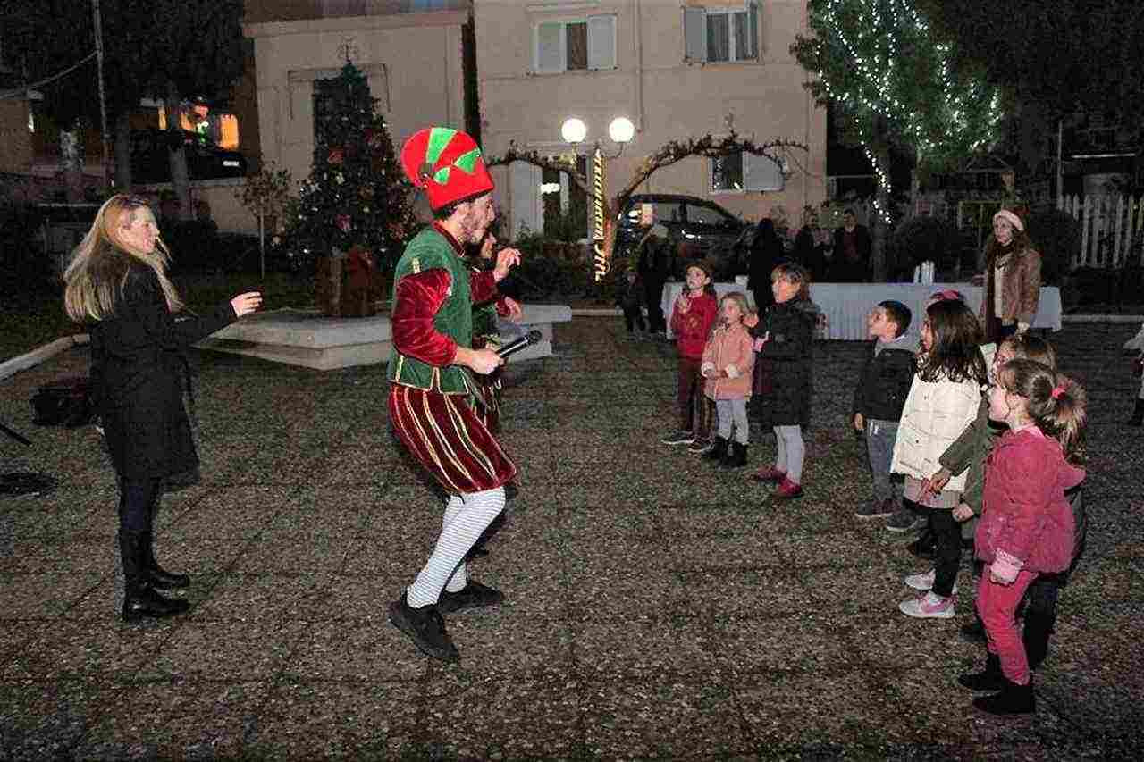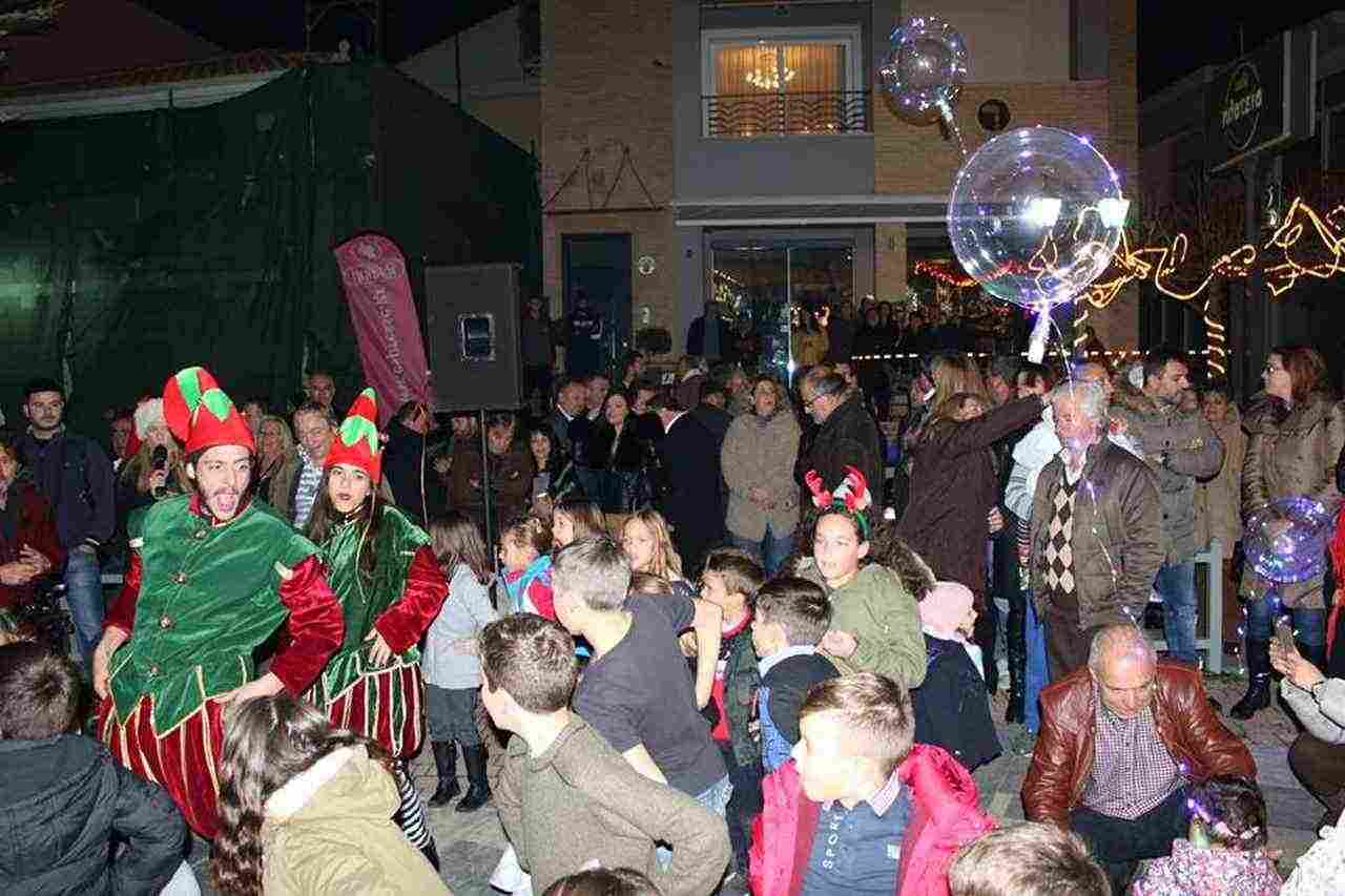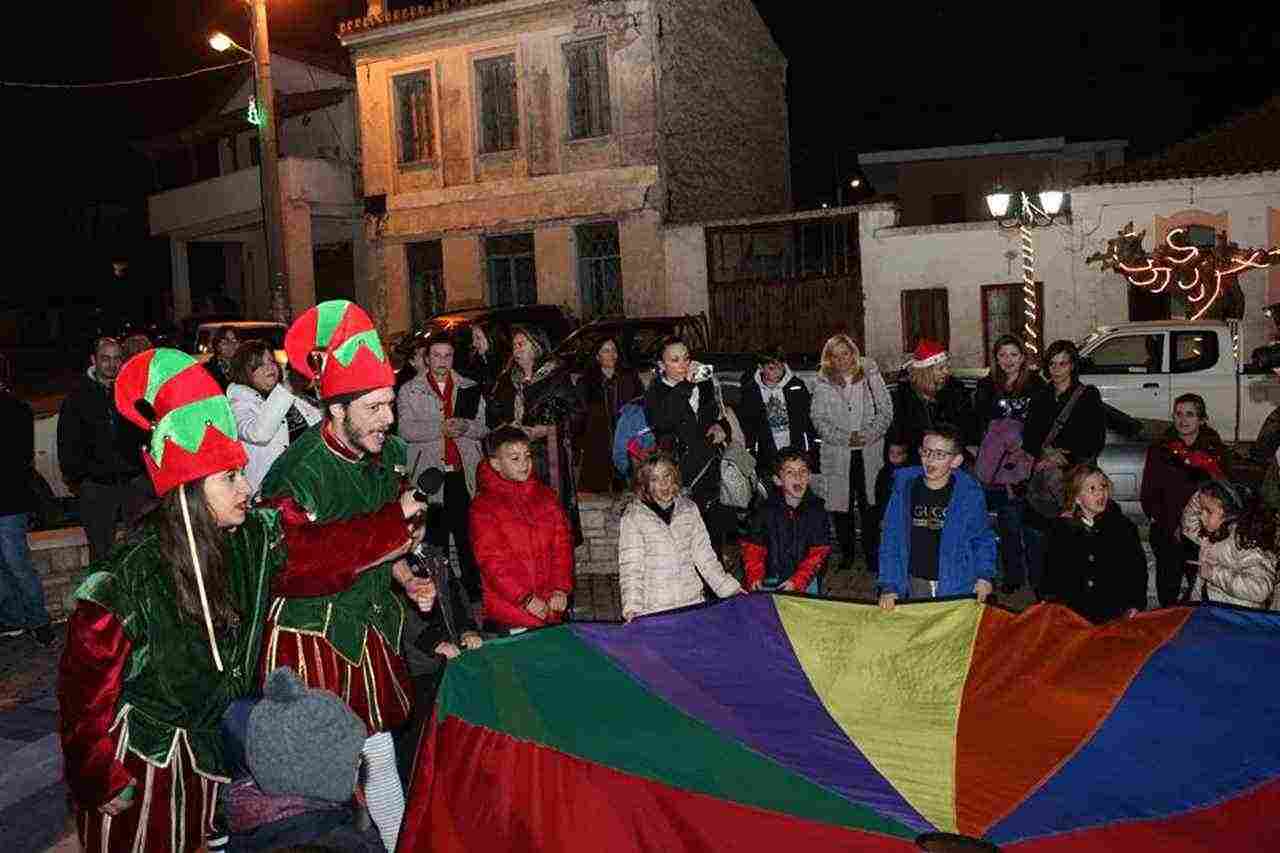 Οι ανιματέρ και ηθοποιοί του ΝΠΔΔ Πολιτισμού διασκέδασαν τους λιλιπούτειους επισκέπτες με το πρόγραμμά τους, χορεύοντας και τραγουδώντας χριστουγεννιάτικα τραγούδια.