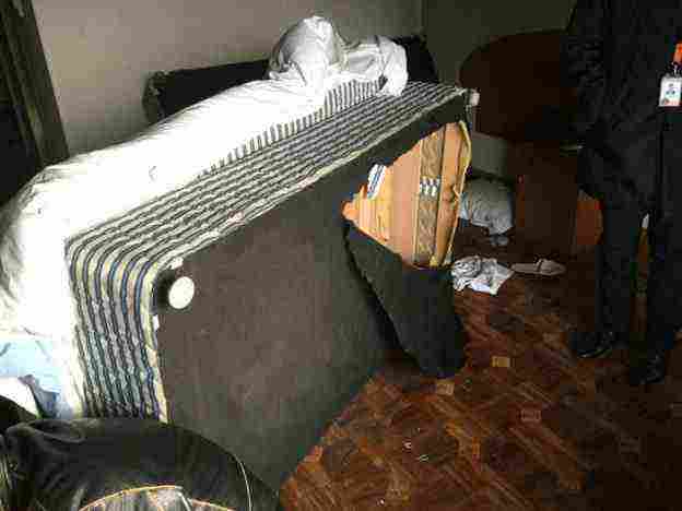 Το δωμάτιό του είχε δύο κρεβάτια, το ένα το είχε ήδη αναστατώσει, για να φαίνεται πως έχει φύγει. Σήκωσε στη συνέχεια το στρώμα και μπήκε από κάτω. Δεν χώραγε και το κρατούσε να αιωρείται για δέκα εκατοστά στον αέρα.