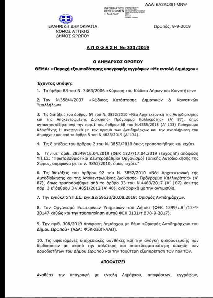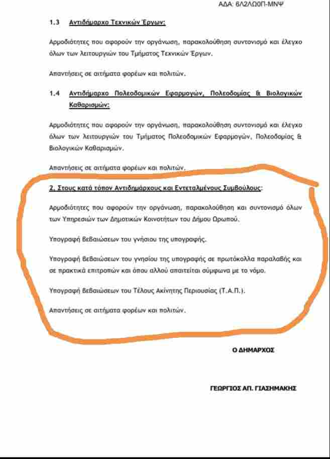 Χωρίς αρμοδιότητες και δικαίωμα υπογραφής άφησε τους Προέδρους των Τοπικών Συμβουλίων, ο νέος «ενωτικός» Δήμαρχος Ωρωπού, επειδή στη συντριπτική πλειοψηφία τους δεν είναι του συνδυασμού του, δείχνοντας τις ρεβανσιστικές τάσσεις του.