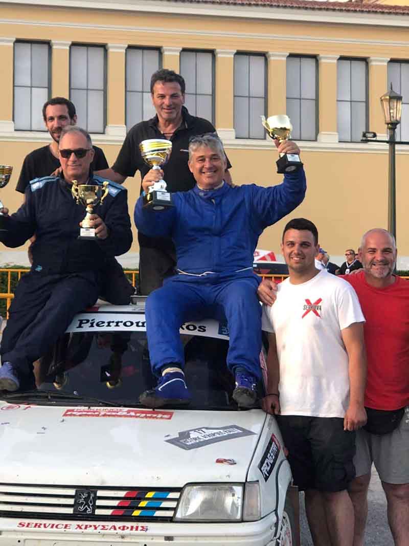 Μετά το πέσιμο της καρό σημαίας ο Γρ. Πιερρουτάκος ευχαρίστησε το συνοδηγό του Αλ. Ματαλιωτάκη καθώς και τον φίλο και μηχανικό του Νίκο Χρυσάφη (GRT) αλλά και την ομάδα του που ανέλαβε από το μηδέν, μερόνυχτα, να ετοιμάσει το αυτοκίνητο προετοιμάζοντας το σχολαστικά με επιμονή και υπομονή, καθώς και όλους όσοι στήριξαν την προσπάθεια.