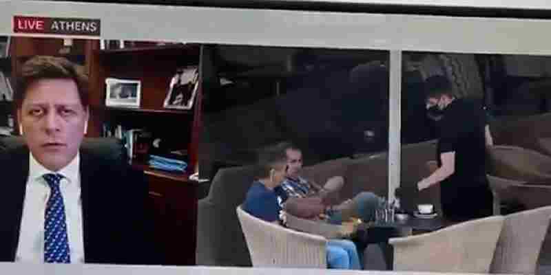 Κατά τη διάρκεια της συνέντευξης το βρετανικό δίκτυο επέλεξε να συνοδεύσει το καθιερωμένο «παράθυρο» με τον κ. Βαρβιτσιώτη,με πλάνα από μία καφετέρια που είχε μόλις ανοίξει.
