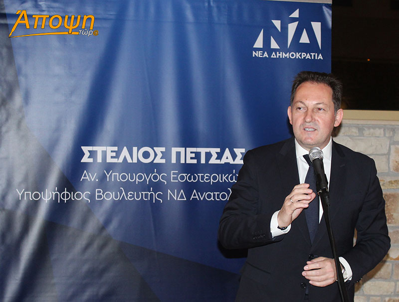Ο κ. Πέτσας ζήτησε από τους φίλους και οπαδούς της Νέας Δημοκρατίας να μην αφήσουν να πάει χαμένη αυτή η ευκαιρία που έχει η χώρα, να συνεχίσει να πορεύεται με σταθερότητα προς το μέλλον. Ζήτησε την θετική ψήφο των πολιτών για να συνεχίσει να προσφέρει στην κοινωνία.