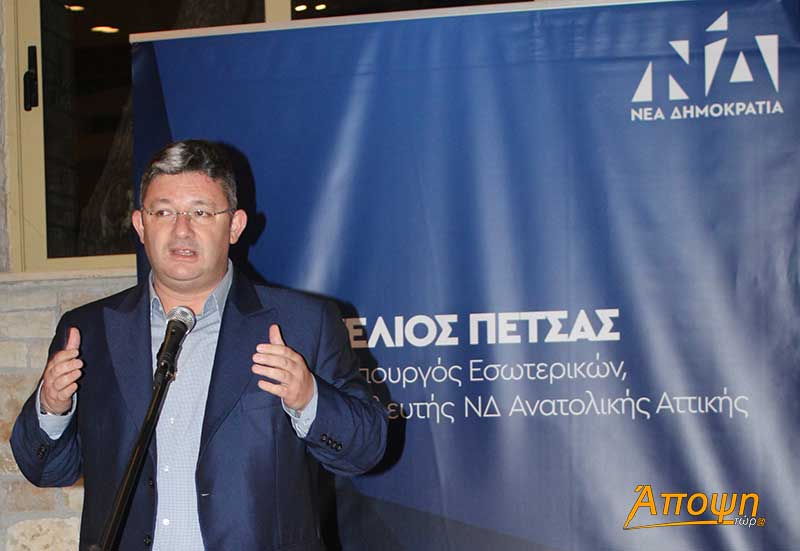 Τον κ. Πέτσα καλωσόρισε στην Βαρυμπόμπη ο Δήμαρχος Αχαρνών Σπύρος Βρεττός ο οποίος μίλησε με κολακευτικά λόγια για το έργο του. Τόνισε ότι «με την βοήθεια και την στήριξη του Αναπληρωτή υπουργού Εσωτερικών, ο οποίος είναι ένας εργάτης της Τοπικής Αυτοδιοίκησης, έλαβα πάνω από 60 εκατ. ευρώ για έργα που θα αναβαθμίσουν την ποιότητα ζωής των κατοίκων της περιοχής».