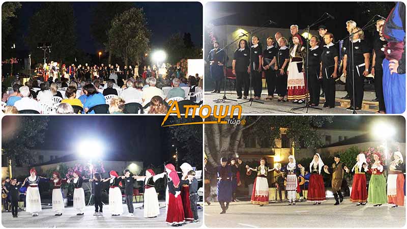 Το κοινό καταχειροκρότησε τη χορωδία και τα χορευτικά του Συλλόγου με χοροδιδάσκαλο τον κ. Κωνσταντίνο Τσάκαλο και συντονίστρια της χορωδίας την κα Αθανασία Καρελιώτη, η οποία είχε και τη μουσική επιμέλεια. Στη λύρα ήταν ο Σεραφείμ Μαρεντάκης και στο λαούτο ο Γιώργος Μιχάλης.