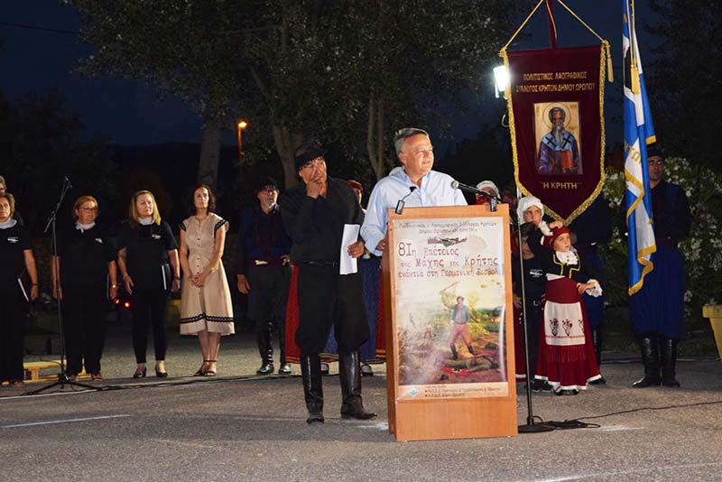 Ο Πρόεδρος του Συλλόγου κ. Μιχάλης Μπαφάκης κατέθεσε στεφάνι και τηρήθηκε ενός λεπτού σιγή. Κατά τον χαιρετισμό του αναφέρθηκε στην σπουδαιότητα της Μάχης της Κρήτης και στη θυσία των Κρητών. Ευχαρίστησε όλους όσοι παρευρέθηκαν στην εκδήλωση για να τιμήσουν την ιστορική επέτειο της Μάχης της Κρήτης που θεωρείται η πρώτη μεγάλη αεραποβατική επιχείρηση και παραμένει μοναδική στο ότι ο κύριος αντικειμενικός σκοπός κατελήφθη εξ ολοκλήρου από αέρος.