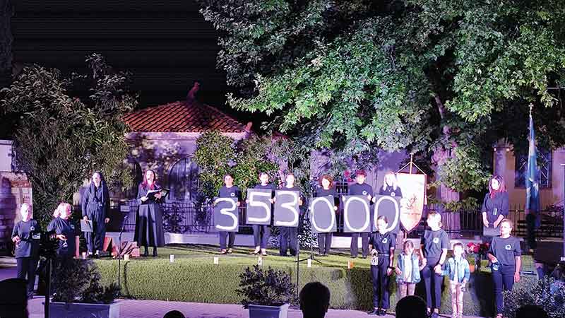 Τα μέλη του Συλλόγου Ποντίων “ο Εύξεινος Πόντος” φορούσαν μπλούζες με το γράμμα G, και σχημάτισαν τον αριθμό 350.000 όσες και οι ψυχές που σύμφωνα με τεκμηριωμένες καταγραφές μαρτύρησαν στα ιερά χώματα του Πόντου.