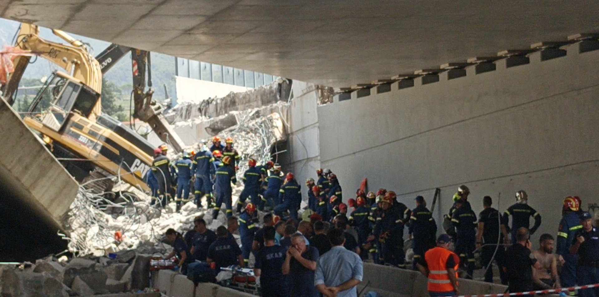Οι άνθρωποι που ήταν κάτω από την γέφυρα ήταν Ρομά. Ειδικά μηχανήματα και εκπαιδευμένοι σκύλοι επιχειρούν στα συντρίμμια για να εντοπίσουν εγκλωβισμένους.
