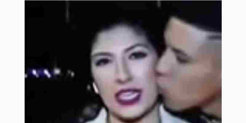 Όπως φαίνεται στο βίντεο, ο άνδρας εμφανίζεται ξαφνικά στο κάδρο και της δίνει ένα φιλί στο μάγουλο.