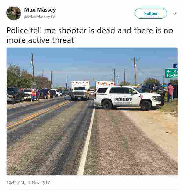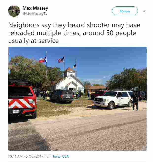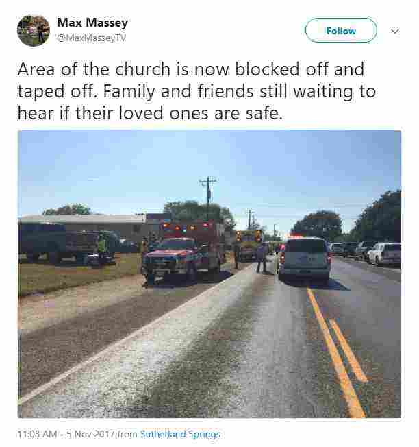 Αυτόπτης μάρτυρας δήλωσε ότι είδε έναν άνδρα να εισβάλλει στην Πρώτη Εκκλησία των Βαπτιστών στο Σάδερλαντ Σπρινγκς και να αρχίζει να πυροβολεί κατά των πιστών. Σύμφωνα με τα τοπικά μέσα, περίπου πενήντα άτομα βρίσκονταν εκείνη την ώρα στο εσωτερικό της εκκλησίας.
