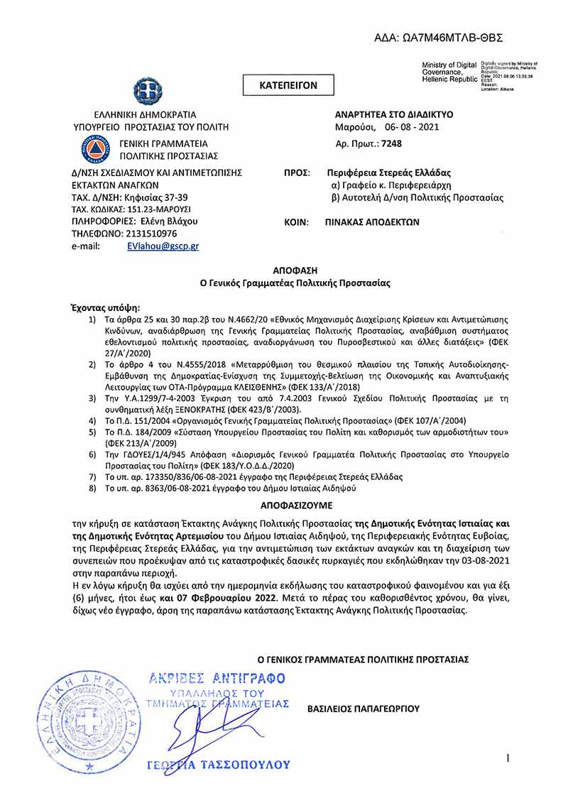 Ροή ΝέωνΣτερεάς ΕλλάδαςΤελευταία Νέα Σε κατάσταση Έκτακτης Ανάγκης οι Δ.Ε. Ιστιαίας και Αρτεμισίου Σοφία Μπασκάκη 6 Αυγούστου, 2021