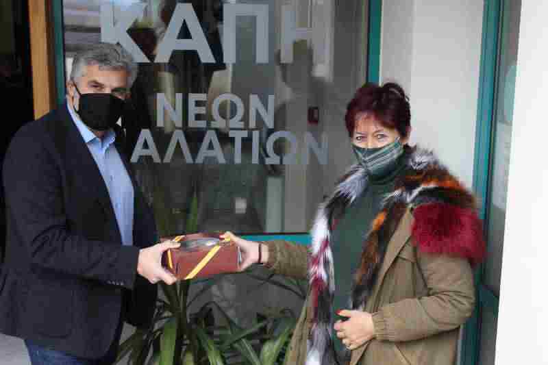 Σήμερα ο Πρόεδρος βρέθηκε στο ΚΑΠΗ Ν. Παλατίων, όπου πρόσφερε από ένα πακέτο με παραδοσιακά γλυκίσματα, παρουσία της υπεύθυνης του ΚΑΠΗ Μαρίας Μαυρίδη.