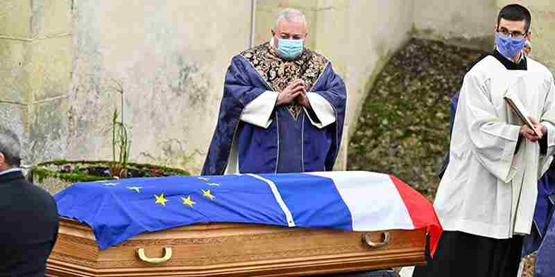 Λόγω των περιορισμών για τον νέο κορονοϊό στη Γαλλία, περίπου 40 άνθρωποι, οικογένεια και στενός κύκλος, παρέστησαν στην κηδεία.
