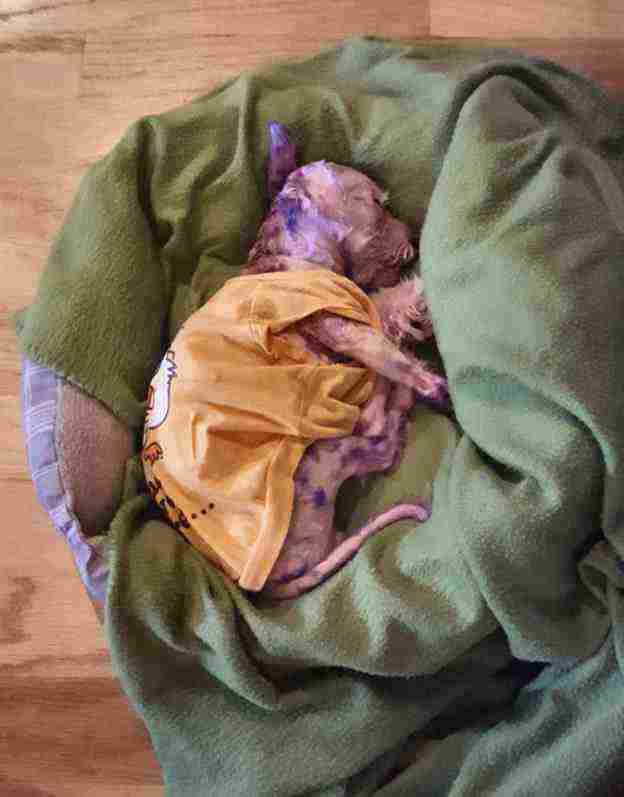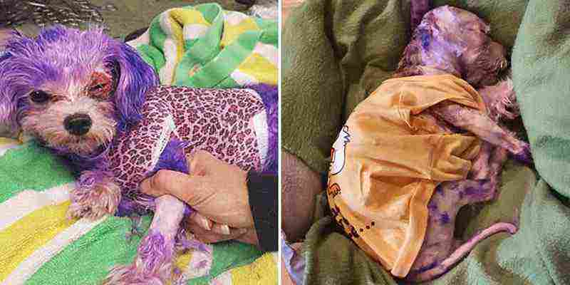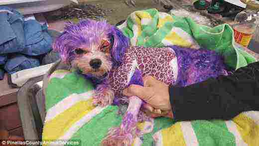 Αυτός ο μικρός σκύλος αφέθηκε στην τύχη του να παλεύει για την ζωή του, όταν ο ανεύθυνος ιδιοκτήτης του τον έβαψε με μια μοβ βαφή μαλλιών.