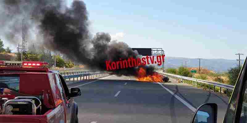 Απίστευτο σκηνικό στην εθνική οδό Αθηνών – Κορίνθου αντίκρισαν οι οδηγοί όταν ένα αυτοκίνητο τυλίχθηκε στις φλόγες εν κινήσεις με κατεύθυνση προς την Κόρινθο.