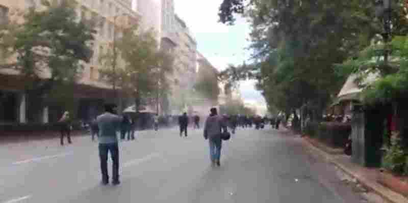 Ομάδες διαδηλωτών πέταξαν πέτρες προς τη Βουλή με τους αστυνομικούς να τους απωθούν με χρήση χημικών προς τα Προπύλαια.