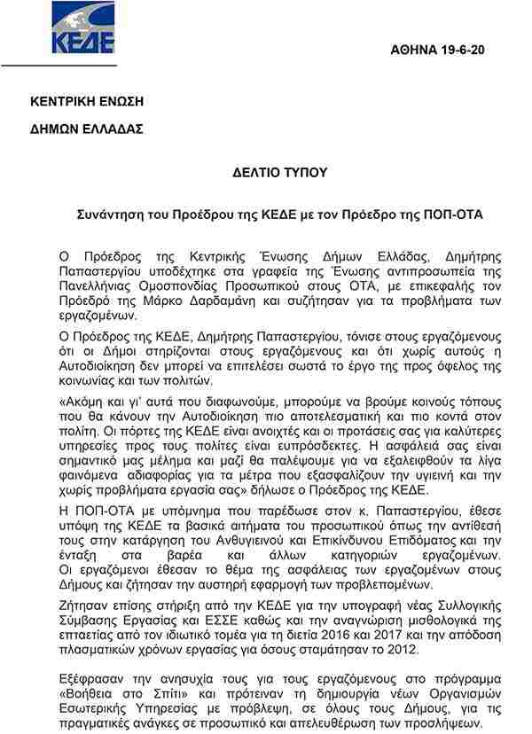 ΕλλάδαΡοή ΝέωνΤελευταία Νέα Συνάντηση του Προέδρου της ΚΕΔΕ με τον Πρόεδρο της ΠΟΠ-ΟΤΑ Σοφία Μπασκάκη 19 Ιουνίου, 2020