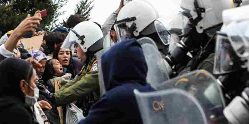 Οι μετανάστες προσπάθησαν να πλησιάσουν τους αστυνομικούς, ενώ φώναζαν και συνθήματα.