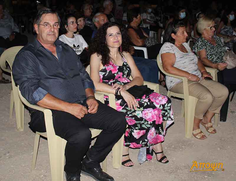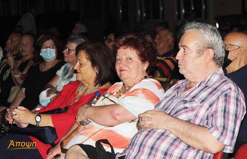 Ο Πρόεδερος της Κ.Ε.Δ.Ω Άγγελος Χατζηιωάννου, ο Πρόεδρος του Ν.Π.Δ.Δ. Πολιτισμού & Περιβάλλοντος Δήμου Ωρωπού Άγγελος Καλύβας και ο Καλλιτεχνικός Διευθυντης Χριστόφορος Κούτσουρης, ο Πρόεδρος της Τ.Κ. Νέων Παλατίων Γιώργος Δεληγιάννης και ο τοπικός σύμβουλος Δημήτρης Ελευθέρας, η πρώην Βουλευτής Ιωάννα Στεργίου και η πολιτευτής Καλλιόπη Μετοχιάτη, ο πρώην Δήμαρχος ωρωπού Γιώργος Γαβριήλ, Πρόεδροι Συλλόγων και Τοπικοί Φορείς, παρακολούθησαν με ιδιαίτερο ενδιαφέρον την μουσικοθεατρική παράσταση.