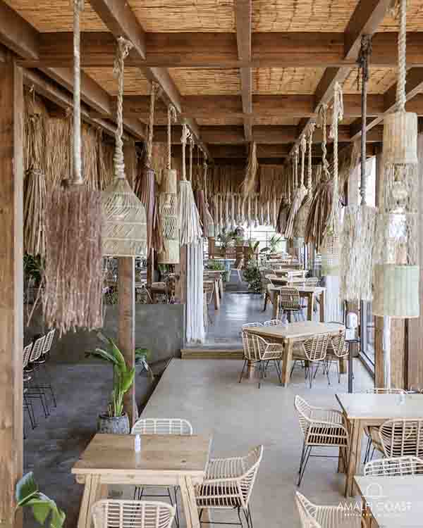 Όπως στη γειτονική Ιταλία ο κολπίσκος του Αμάλφι προσφέρει ένα ειδυλλιακό τοπίο, έτσι συμβαίνει και στην ανατολική πλευρά της Ρόδου, όπου βρίσκεται το ομώνυμο beach-bar restaurant, μόλις λίγα λεπτά (με τα πόδια) μακριά από το εμβληματικό ξενοδοχείο Rodos Palace. Αποτελεί ένα από τα πιο δημοφιλή σημεία στην Ιαλυσό καθώς προσφέρει μοναδική θέα στο ηλιοβασίλεμα που ενώνει Δύση και Ανατολή σε συνδυασμό με δημιουργικά κοκτέιλ άλλα και αυθεντικές Ιταλικές γεύσεις απευθείας από τον ξυλόφουρνο με την υπογραφή του chef Θανάση Χαραλάμπους και high light τις παπαρδέλες ραγού.